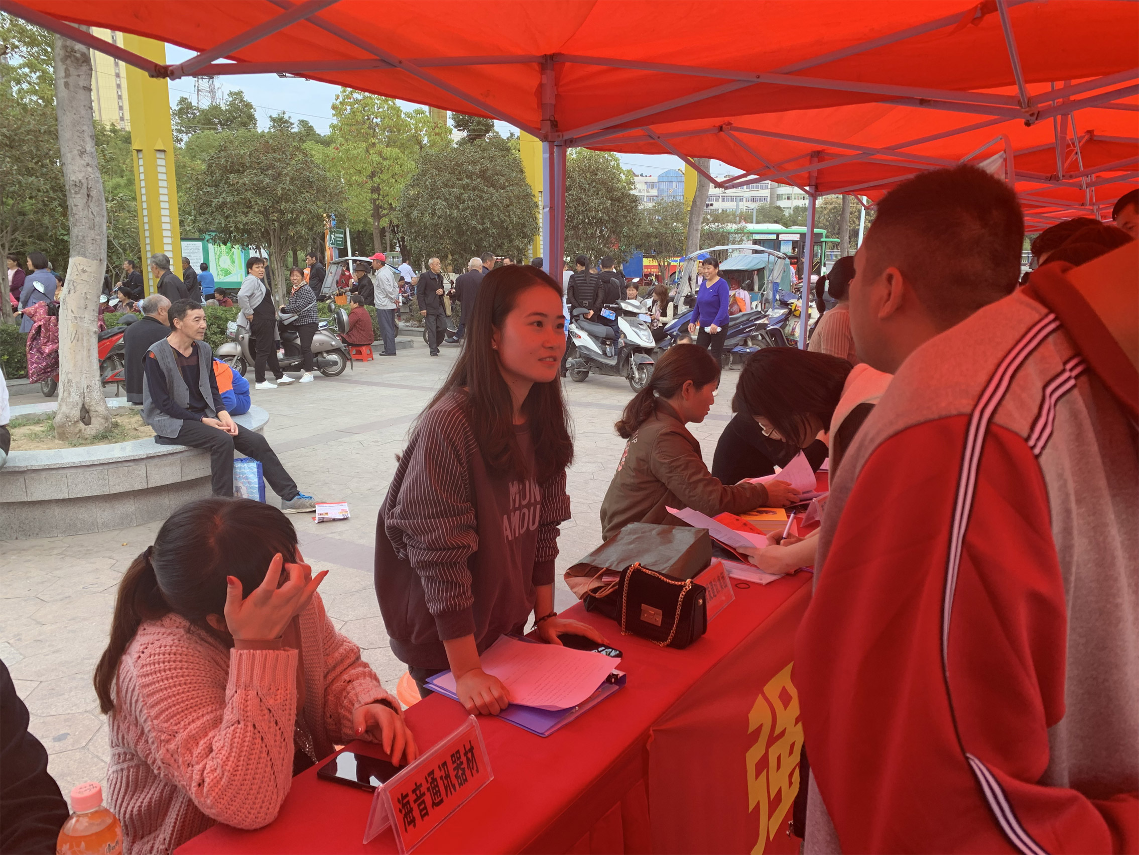 14时30分,位于肥东县和平文化广场招聘会现场,已有广大青年开始入场求职。求职者热情高涨,纷纷向心仪的单位投下简历。此次招聘会吸引了70多家企事业单位踊跃参加,提供岗位3900余个,80%以上的岗位适合青年就业。此次招聘会适逢求职高峰季,对各用人单位和求职者可谓是一场“及时雨”,有效缓解当前经济形势下“就业难”、“求贤难”等问题。