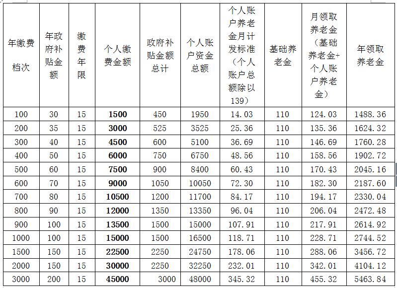 注:以上数据不含银行利息,当前基础养老金标准110元/月(基础养老金标准随经济发展情况予以调整)。